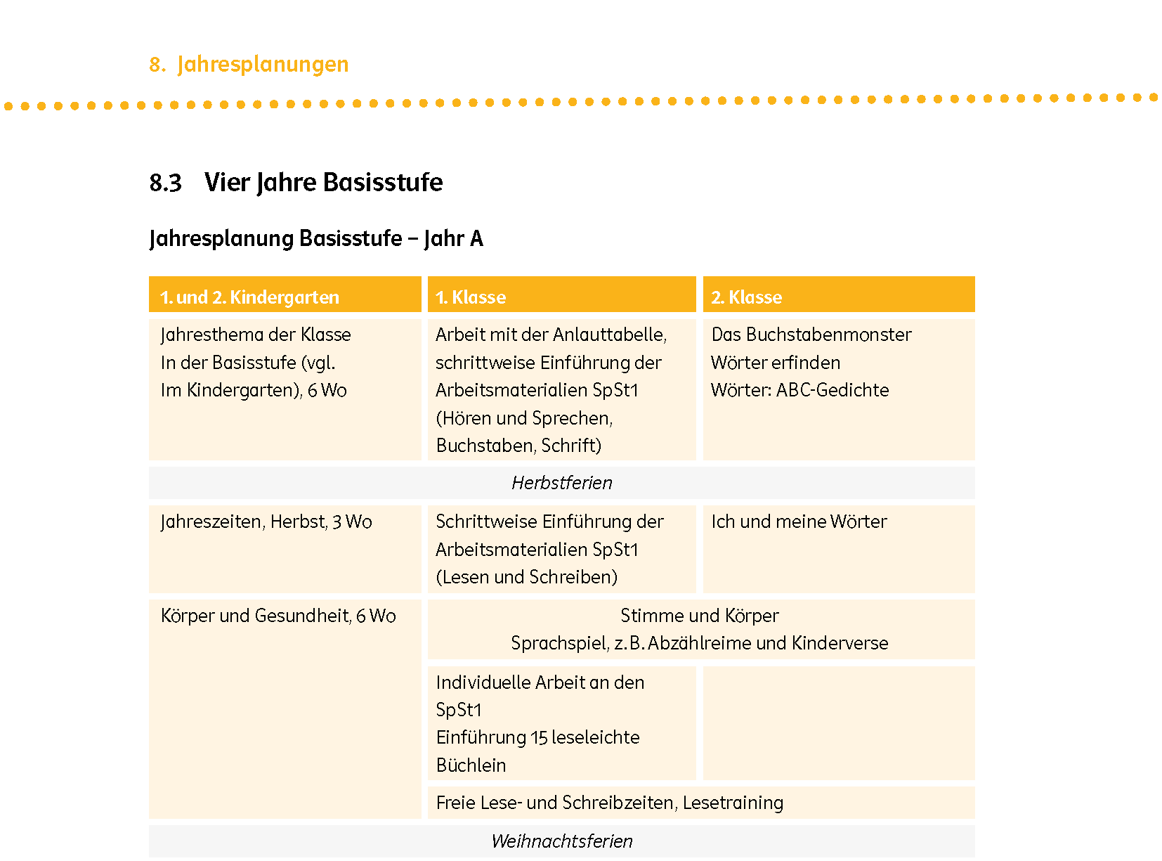 Ausschnitt aus der Jahresplanung Basisstufe