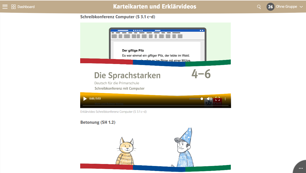 Das interaktive Grammatik- und Rechtschreibtraining ist separat über meinklett.ch zu öffnen. Es wird beim Einlösen des Nutzer-Schlüssels automatisch mit aufgeschaltet.