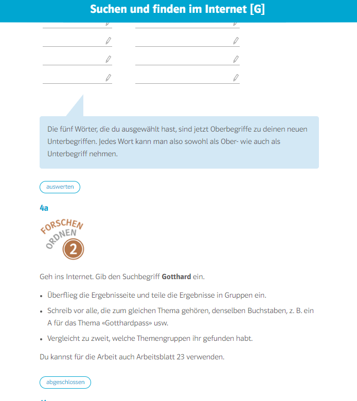 - Lösen der Aufgaben direkt in der Web-Umgebung und deren Kontrolle, sofern Lösungen von der Lehrperson freigegeben