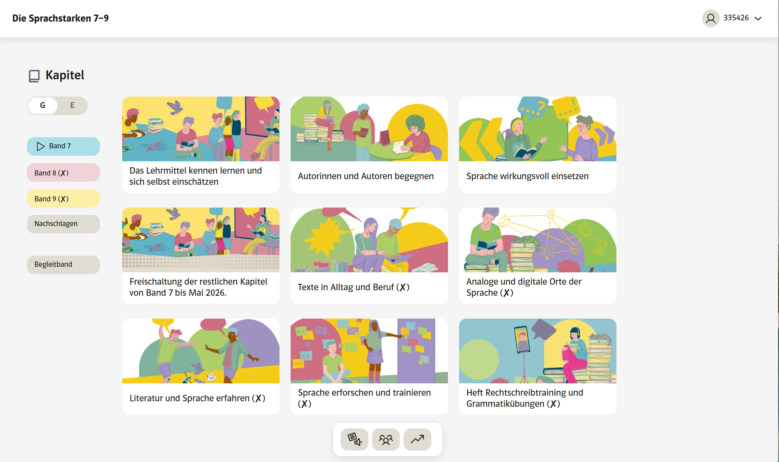 Die Schülerinnen und Schüler können ebenfalls zwischen den digitalen Inhalten beider Versionen (G und E) wechseln.