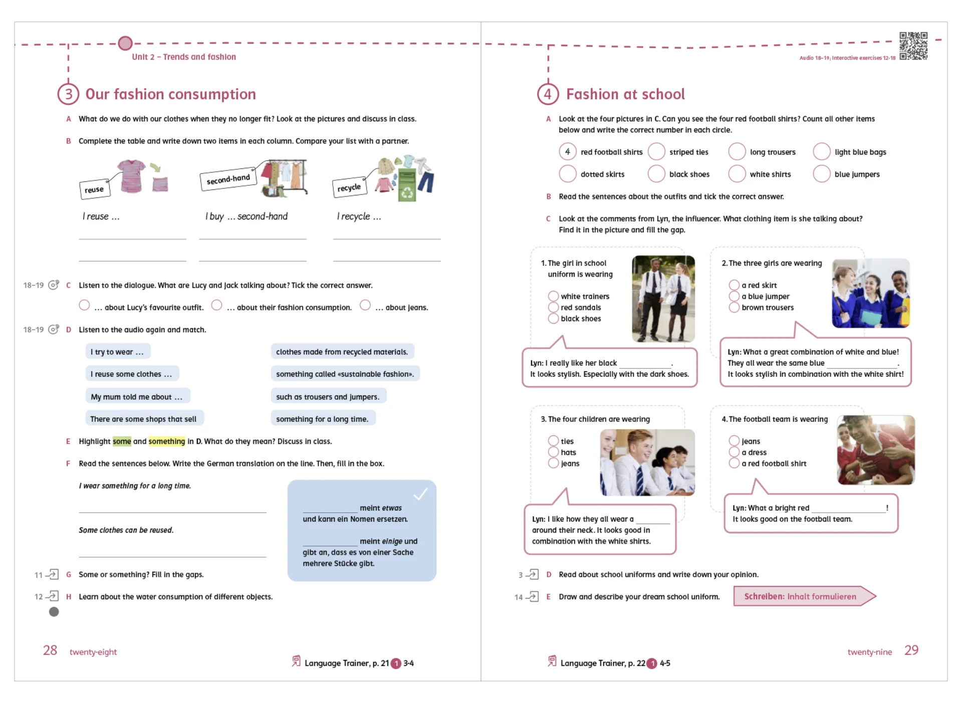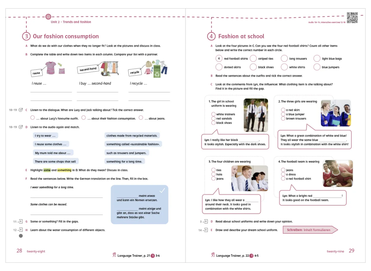 In der Unit «Trends and fashion» sind ebenfalls BNE-Aspekte eingebaut. Autorin dieser Unit ist Evelyn Ruf. Sie unterrichtet an der Schule Friesenberg in Zürich und ist begeistert von BNE. «Ich würde sogar ein eigenes Fach dafür begrüssen», sagt die Primarlehrerin. Dem im Lehrplan 21 gewählten Weg mit der Verankerung im Fachunterricht kann sie aber auch viel abgewinnen.