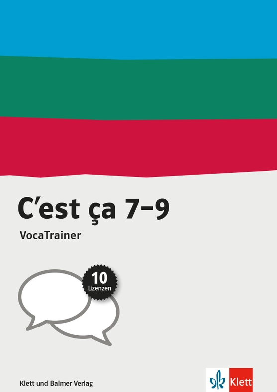Der VocaTrainer enthält die Vokabeln aller Bände von «C’est ça». Er wird mit dem Nutzer-Schlüssel auf dem Lizenzschein freigeschaltet auf meinklett.ch. Es handelt sich bei diesem Artikel um ein Paket mit zehn Einjahreslizenzen.