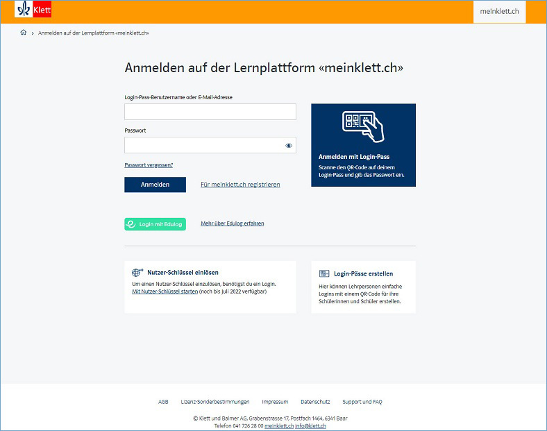 Ab dem 19. Juli 2022 sind weitere Verbesserungen umgesetzt, um unsere Lernplattform meinklett.ch noch benutzerfreundlicher zu machen. Neu werden die unterschiedlichen Funktionen von Login und Nutzer-Schlüssel klar getrennt: Das Login dient dem wiederholten Zugang zur Lernplattform und der Nutzer-Schlüssel nur dem einmaligen Freischalten des Inhalts.