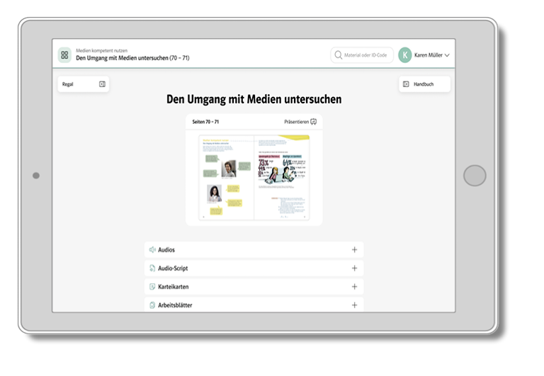 Der Lehrperson stehen im digitalen Raum alle Unterrichtshinweise und -materialien zur Verfügung. Zu den Highlights der Neuerungen für die Lehrperson zählen die punktgenau verorteten Unterrichtshinweise (u. a. zum Differenzieren), der Arbeitsblattgenerator und die Möglichkeit, Lösungen zu den Aufgaben für die Klasse freizuschalten.